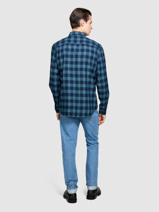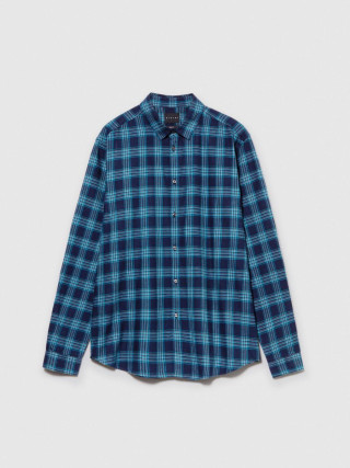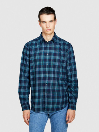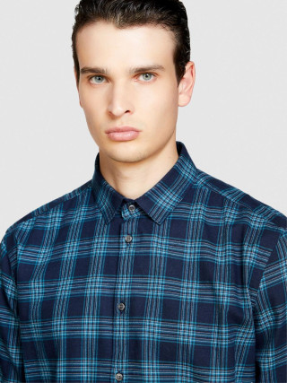 Sisley muška košulja od 100% pamučnog flanela kariranog dezena. Kragna, prednje kopčanje dugmićima, dugi rukavi i blago zaobljeni donji deo.
