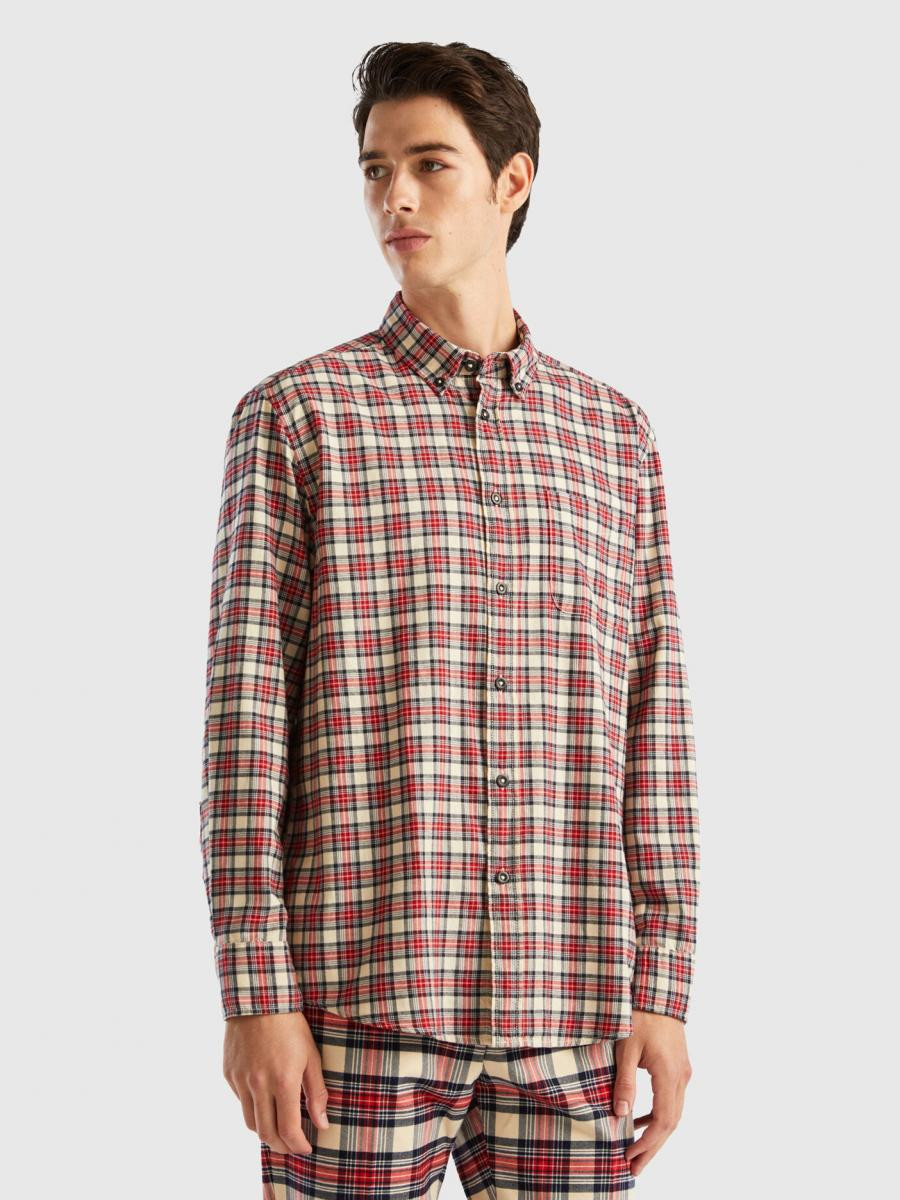 Benetton muška košulja od flanela od čistog pamuka sa kariranim dezenom. Regular fit model, kragna sa kopčanjem dugmićima i prednje kopčanje. Dugi rukavi i našiveni džep na grudima. Obavezna stvar za hladnu sezonu.