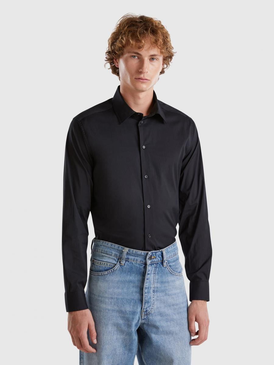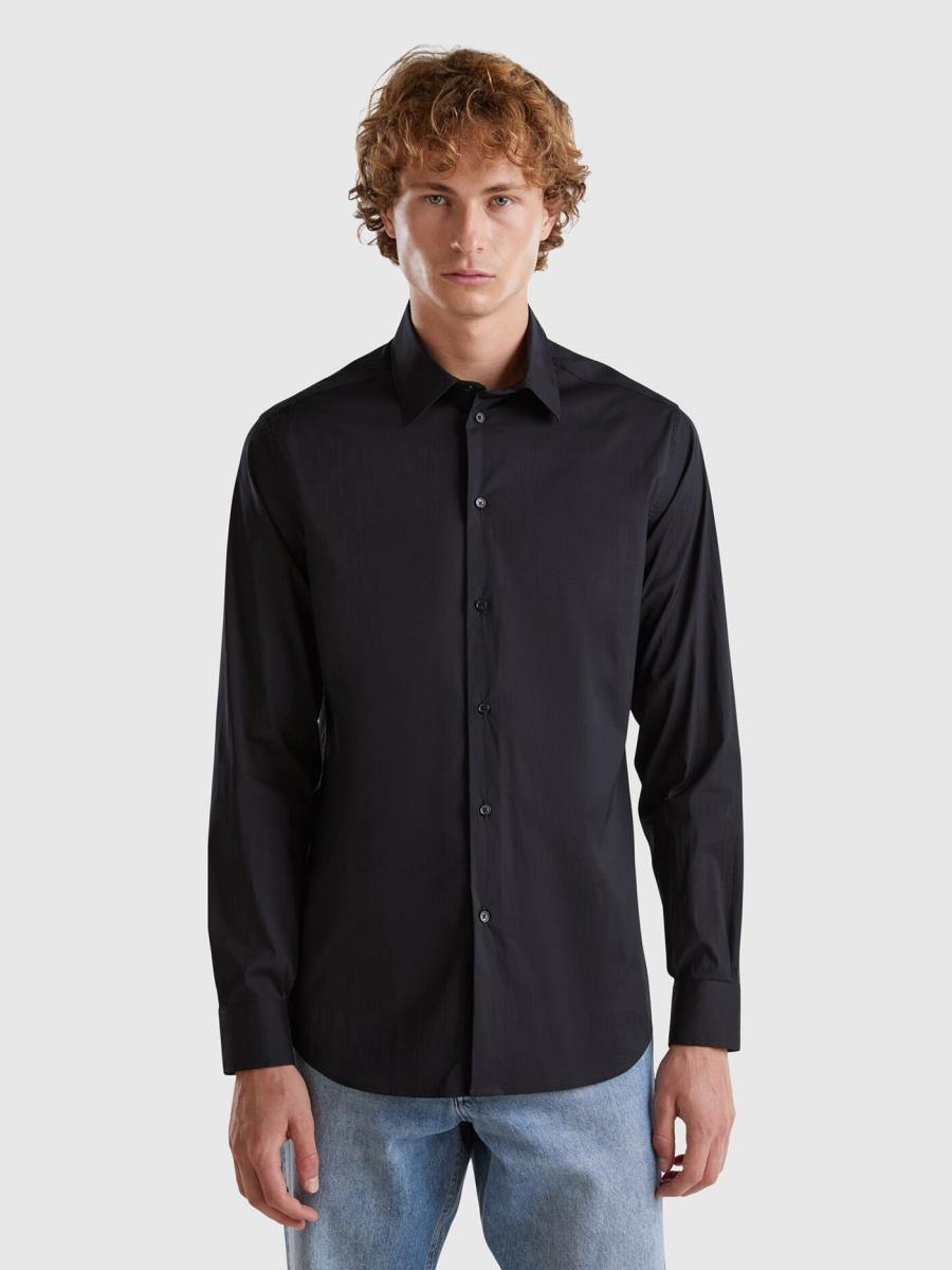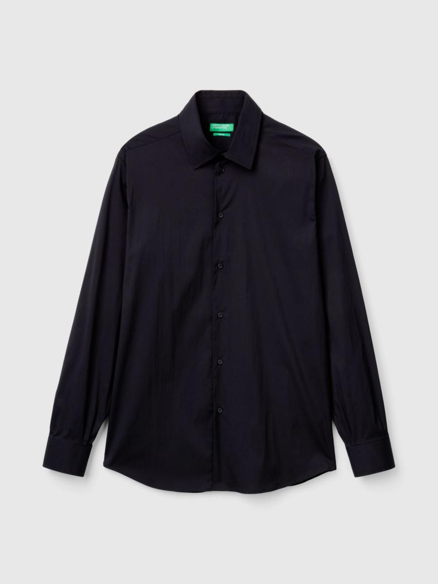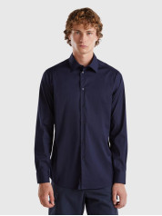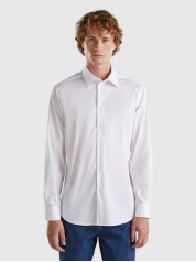 Benetton muška košulja dugih rukava, slim fit model od elastične mešavine pamuka. Klasična kragna, jaram i nabori pozadi, zaobljeni donji deo.