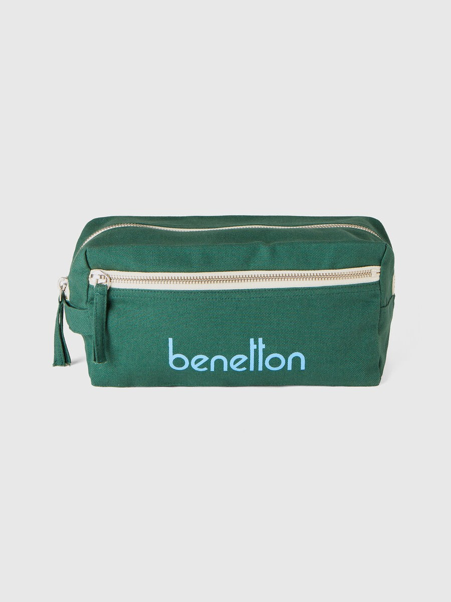 Benetton kozmetička torbica od čistog pamučnog platna pravougaonog oblika. Pogodno otvaranje sa patent zatvaračem i rajsferšlusom, prednji džep sa patent zatvaračem. Kontrastna štampa logotipa na jednoj strani. Praktična i prostrana. Dimenzije: 24*12*9 cm.