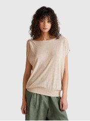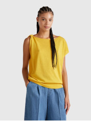 Benetton ženski top od mekog prediva od mešavine viskoze i lana. Asimetričan izrez sa čvorom i drapiranjem. Udoban kroj, idealan za kul i ženstvene kombinacije.