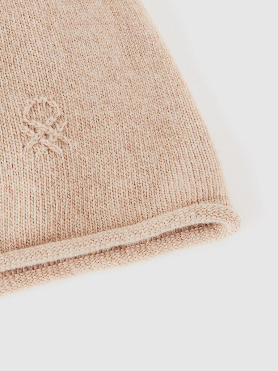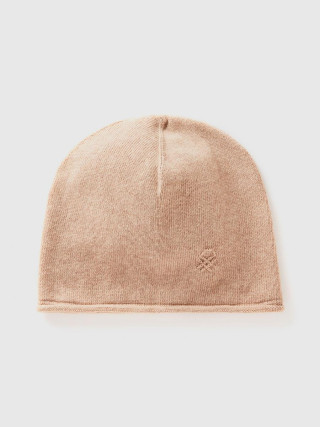 Benetton ženska kapa od mešavine viskoze, kašmira i vune. Rub sa manžetnom i prednjim logom. Dodatak čistog kroja, idealna u hladnijim danima. Ovaj proizvod je napravljen na održiv način zahvaljujući projektu VASATEKS, koji omogućava da se voda iz proizvodnog ciklusa povrati i ponovo koristi u narednim procesima.