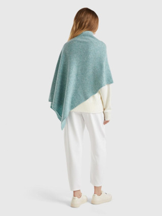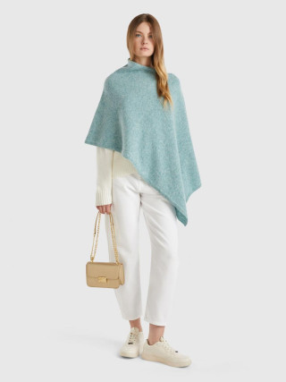 Benetton ženski topli pleteni pončo sa širokim okruglim vratom. Izrađena od talijanske pređe od 100% šetlandske vune, bogate, ali iznenađujuće meke i visoke izdržljivosti. Prisutnost Woolmark logotipa garantuje visok kvalitet odevnih predmeta kroz primenu i praćenje specifičnih standarda u proizvodnji vune, od uzgoja do finalnog proizvoda.