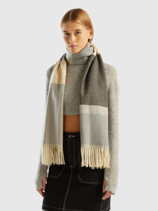 Benetton ženski šal od tople i meke guste mešavine viskoze. Rese na krajevima i višebojni prugasti dezen. Savršeno za hladnije dane.