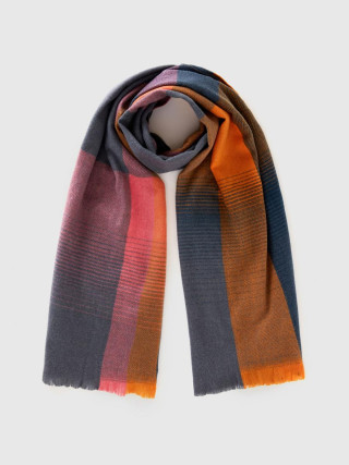 Benetton ženski šal od meke viskozne tkanine srednje težine. Rese na krajevima i tartan šema. Toplo i udobno, neophodno za hladnu sezonu.