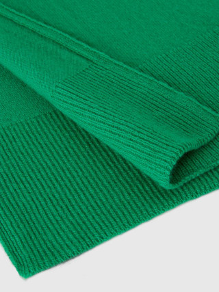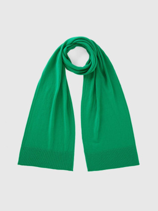 Benetton ženski mekani šal od čiste merino vune, lagan i prijatan na dodir. Završava se pola rebrastog pletiva. Prisustvo logotipa Voolmark garantuje visok kvalitet odevnih predmeta kroz primenu i prac´enje specifičnih standarda u proizvodnji vune, od uzgoja do finalnog proizvoda.