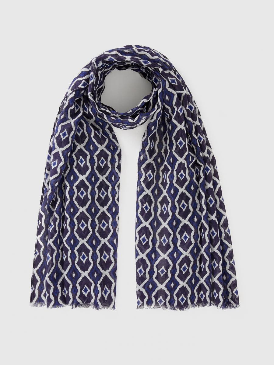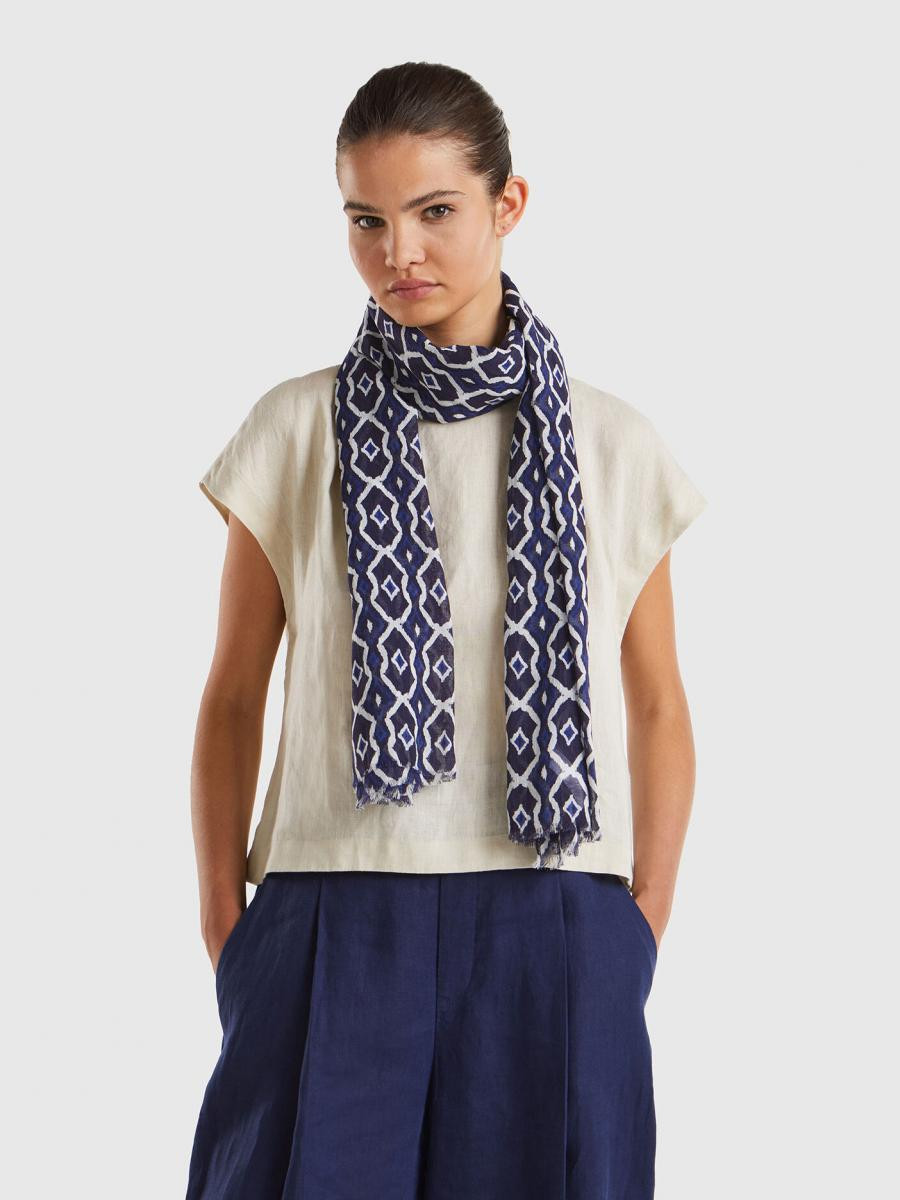 Benetton ženska mekana marama od mešavine pamuka i lana, sa odštampanim geometrijskim šarama. Idealan za davanje daška boje svakoj odjeći. Dimenzije: 70*180 cm.