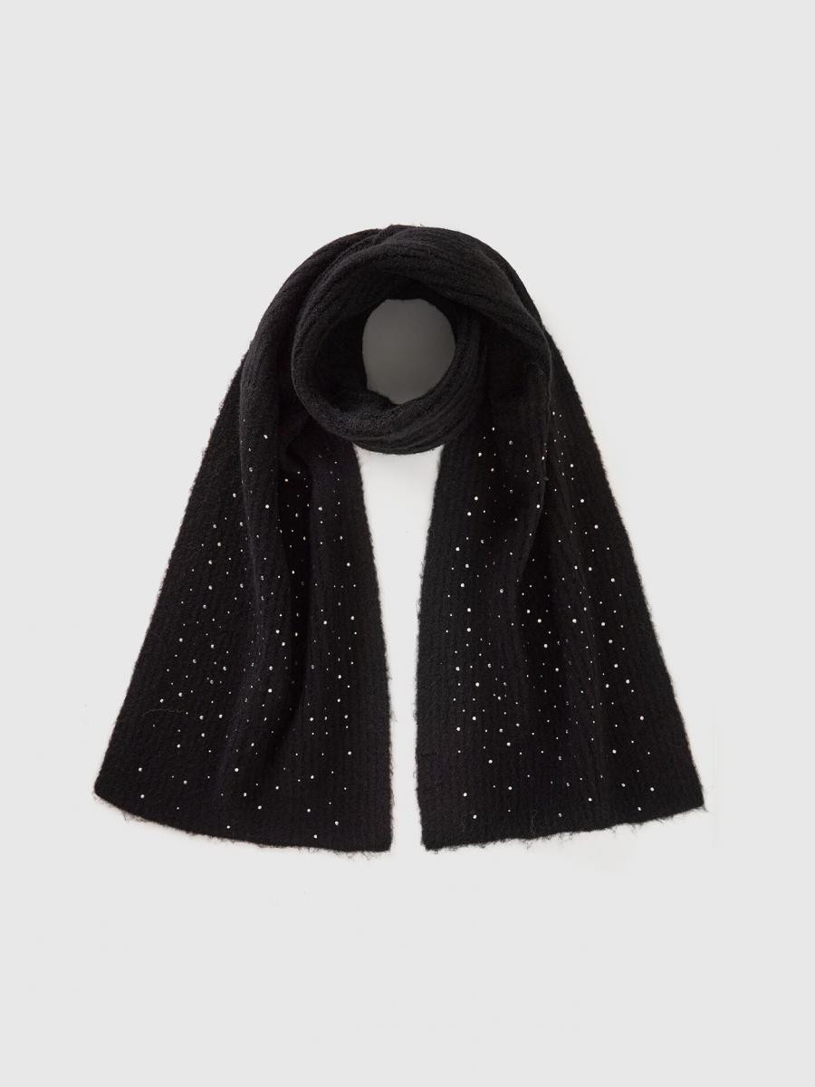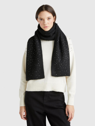 Benetton ženski šal od mekane vunene mešavine pređe sa melanž efektom, sa zaokretom i malom aplikacijom od štrasa na krajevima. Sjajni dodatak, savršen za hladne dane.