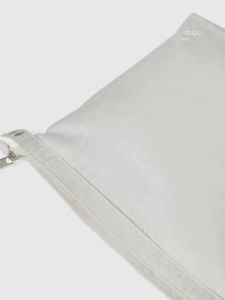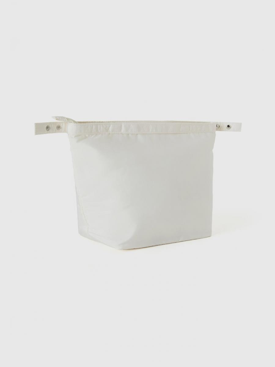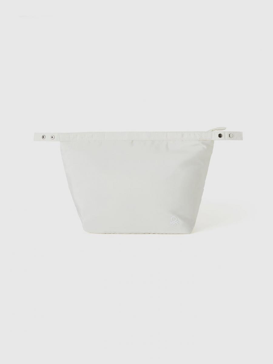 Benetton ženski neseser opremljen dvostrukim zatvaranjem: sa patent zatvaračem i rajsferšlusom za izvlačenje i sa kopčama na krajevima. Ton-on-tone logo izvezen na jednoj strani.