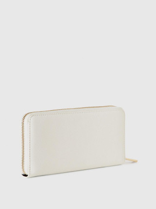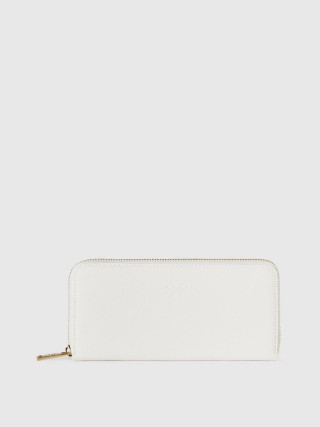 Benetton ženski novčanik od imitacije kože sa blago reljefnom teksturom. Otvaranje patent zatvarača sa logom utisnutim na patent zatvarač, logo odštampan na jednoj strani. Dva unutrašnja odeljka za novčanice, džep za novčiće i utore za kreditne kartice. Dimenzije: 20*9*2 cm.