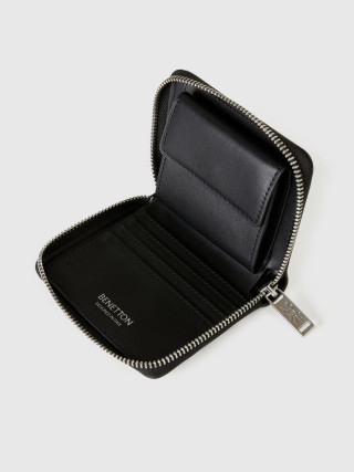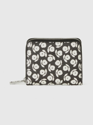 Benetton ženski novčanik od štampane imitacije kože sa blago reljefnom teksturom. Cvetni print na pozadini, patent zatvarač sa logom na rajsferšlusu, utisnut logo na jednoj strani. Unutrašnji odeljak za novčanice, džep za novčic´e i pregrade za kreditne kartice. Hladan i svakodnevni dodatak za držanje u torbi. Dimenzije: 11*9*2 cm.