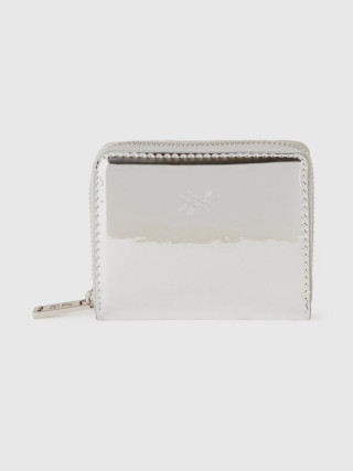 Benetton ženski novčanik od štampane imitacije kože sa blago reljefnom teksturom. Cvetni print na pozadini, patent zatvarač sa logom na rajsferšlusu, utisnut logo na jednoj strani. Unutrašnji odeljak za novčanice, džep za novčic´e i pregrade za kreditne kartice. Hladan i svakodnevni dodatak za držanje u torbi. Dimenzije: 11*9*2 cm.