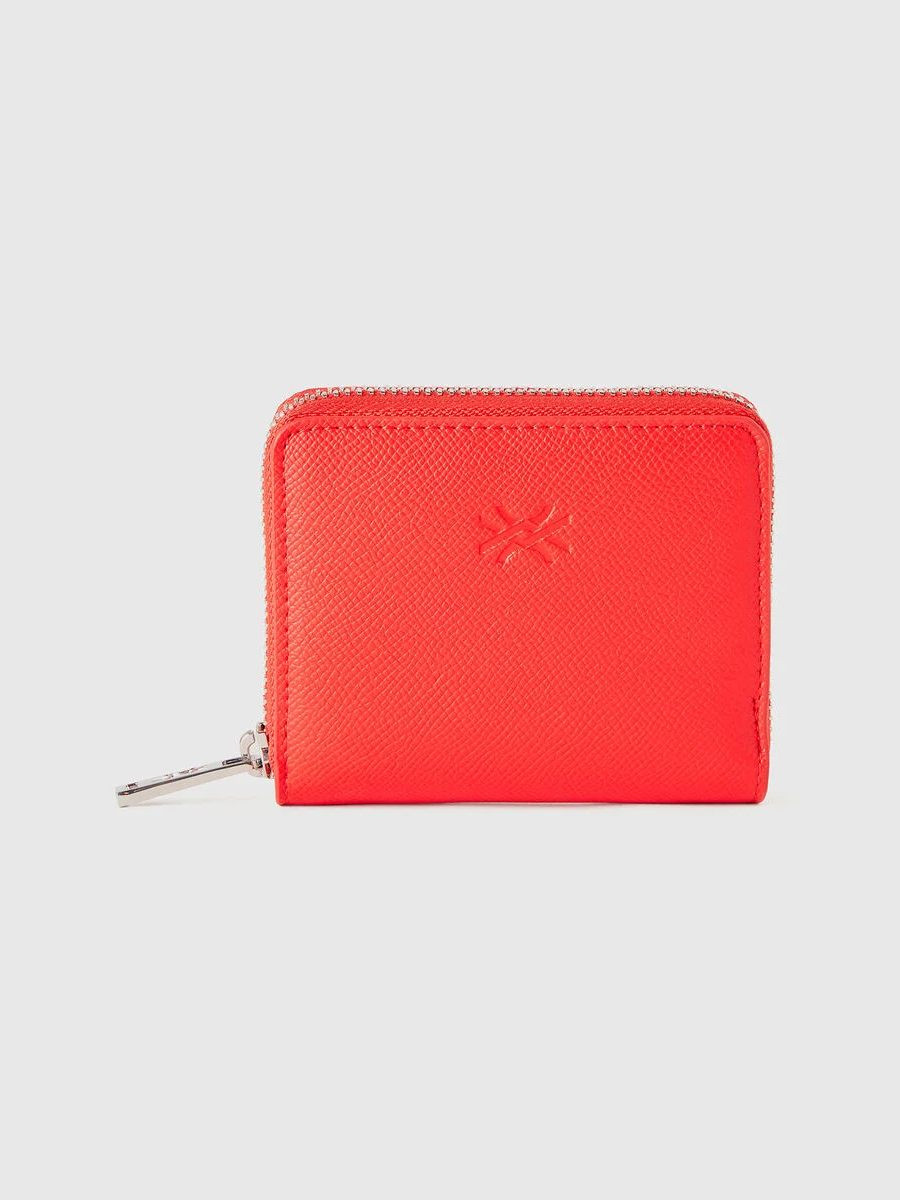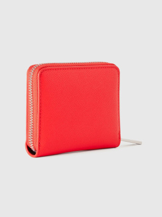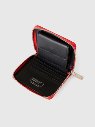 Benetton ženski novčanik od imitacije kože sa blago reljefastom teksturom. Otvaranje patent zatvarača sa logom utisnutim na patent zatvarač, logo odštampan na jednoj strani. Unutrašnji odeljak za novčanice, džep za novčiće i utore za kreditne kartice. Dimenzije: 11*9*2 cm.
