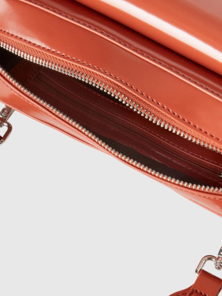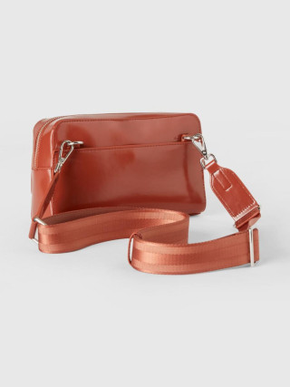 Benetton ženska pravougaona torba od imitacije kože. Otvor na patentni zatvarač na vrhu, spoljni džep sa metalnim prstenom za zatvaranje. Kaiš za nošenje preko ramena od žakard trake koji se može ukloniti. Dimenzije: 24*14*6 cm.