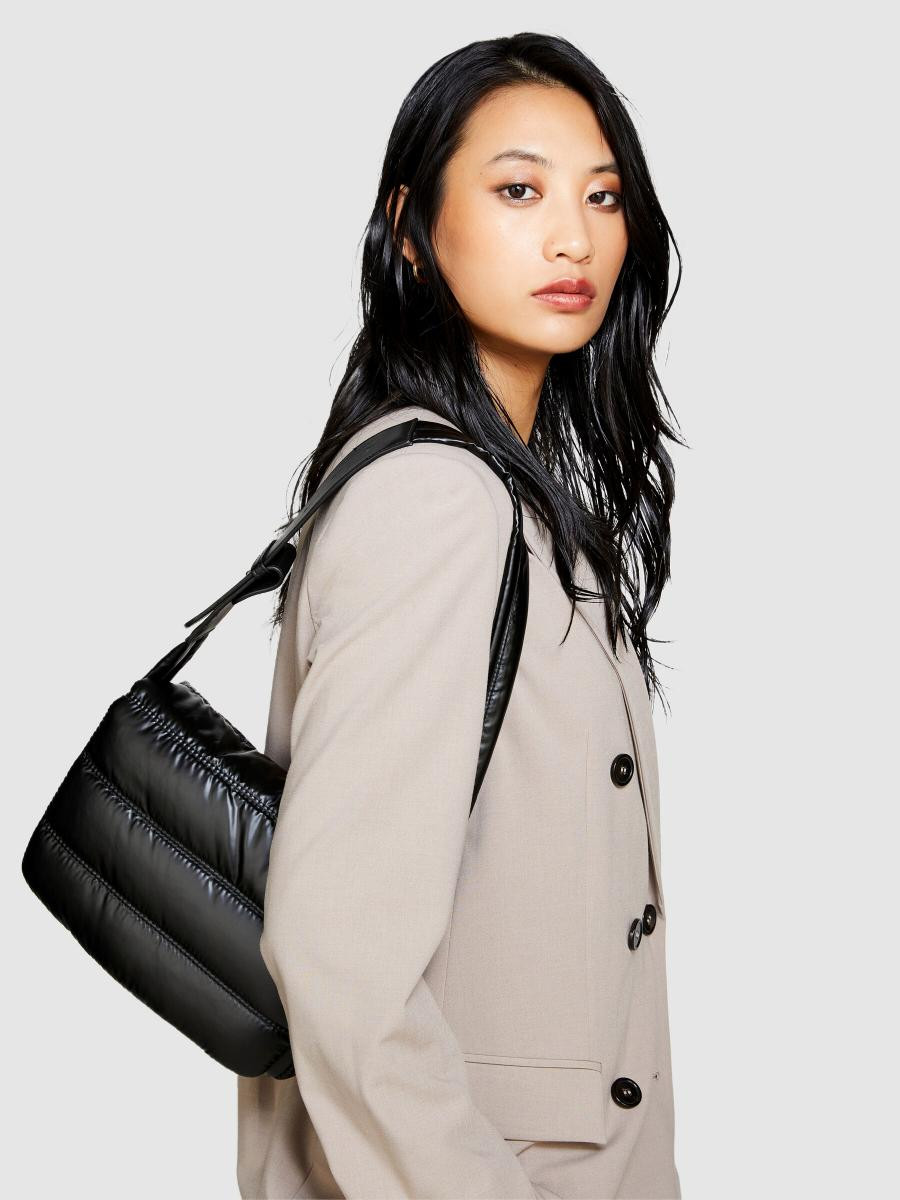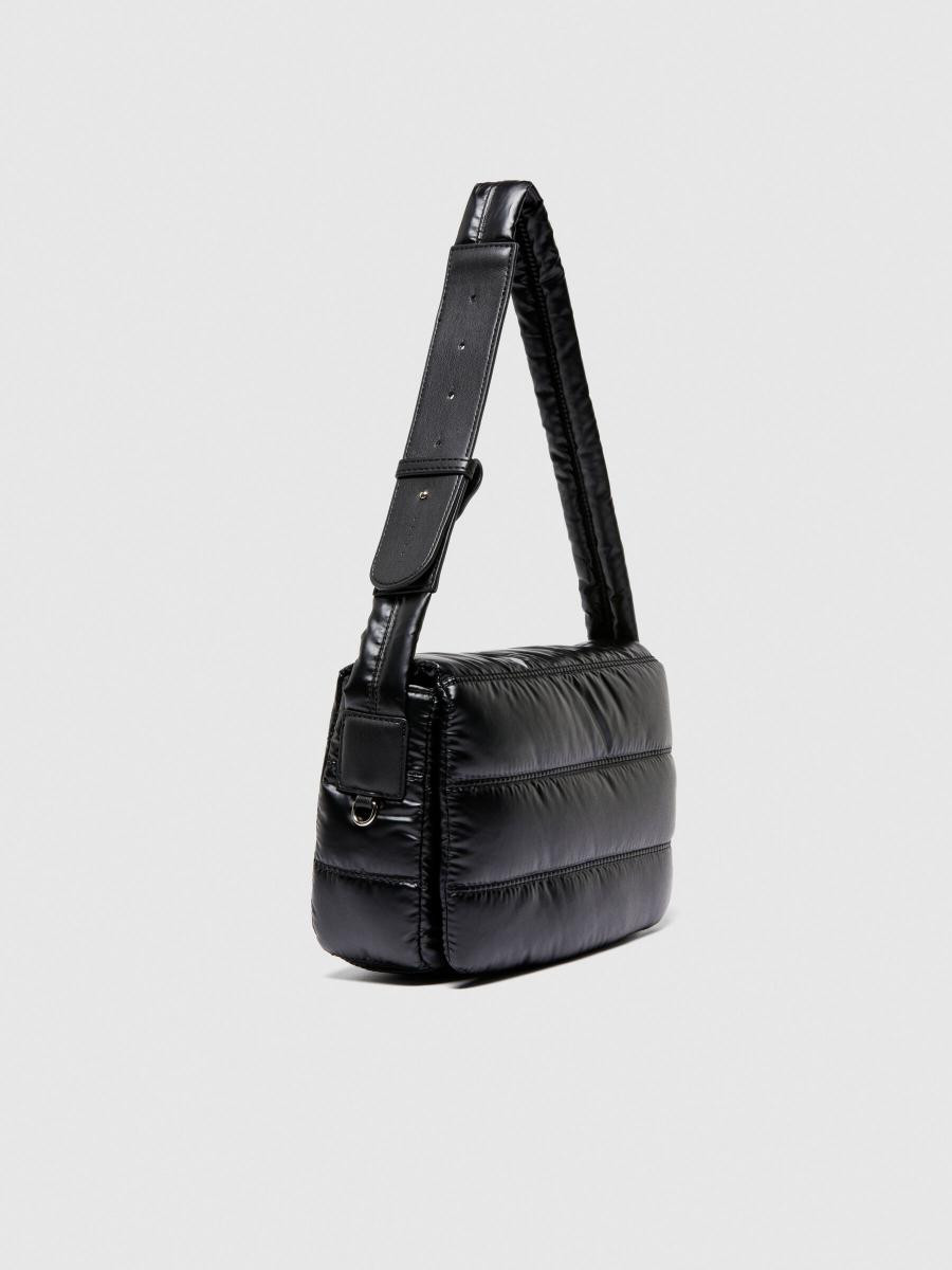 Sisley ženska messenger torba od podstavljenog i prošivenog najlona. Jedna ručka sa podesivom metalnom iglom i zatvaračem sa poklopcem i dvostrukim magnetnim dugmetom. Dimenzije: 25*16*7 cm.