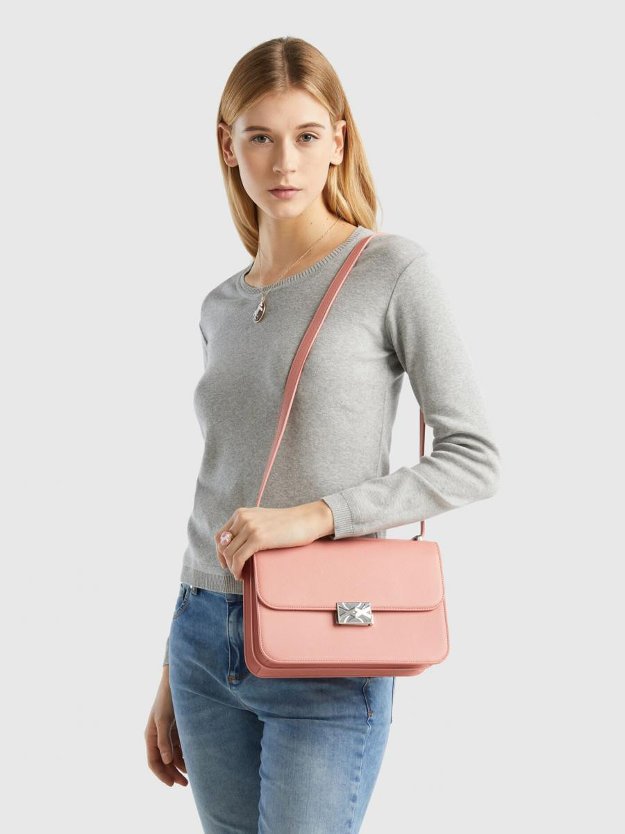 Benetton ženska torba od štampane imitacije kože sa blago reljefnom teksturom. Podesiva naramenica, prednji preklop i metalno magnetno zatvaranje sa logotipom Benetton. Dve duple pregrade, jedan unutrašnji džep sa patent zatvaračem. Dimenzije: 25*17*10 cm.