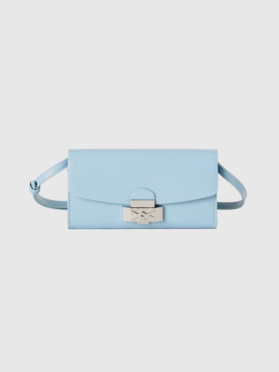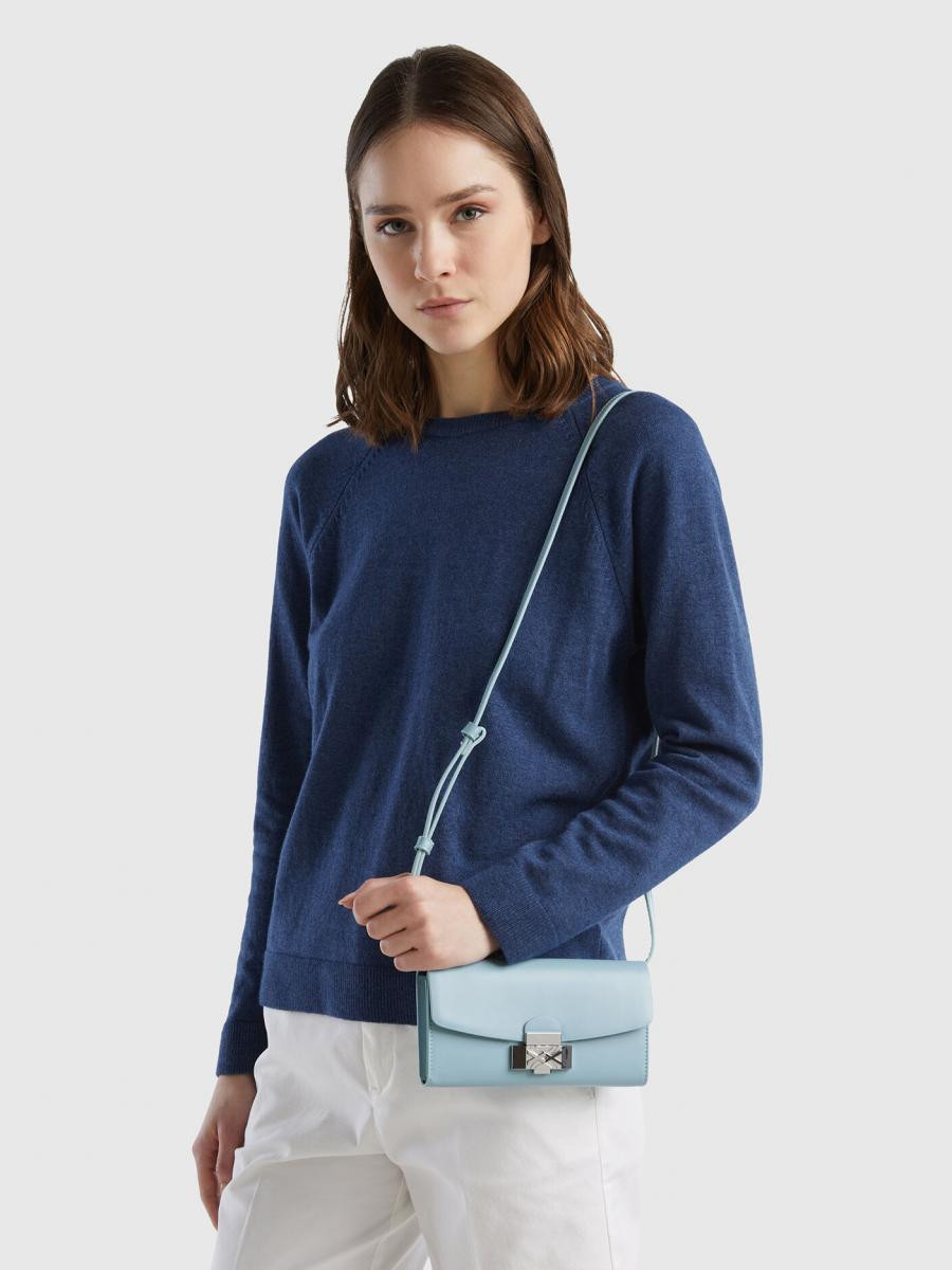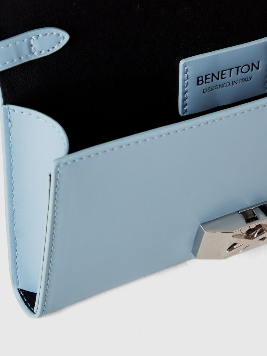 Benetton ženska torbica za mobilni telefon od glatke imitacije kože, prednji preklop sa metalnim kopčom sa logotipom. Opremljena podesivim kaišom za rame od iste tkanine. Elegantan i moderan dodatak koji uvek možete nositi sa sobom. Dimenzije: 9*18*3 cm.