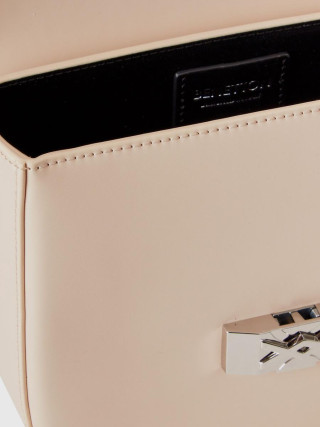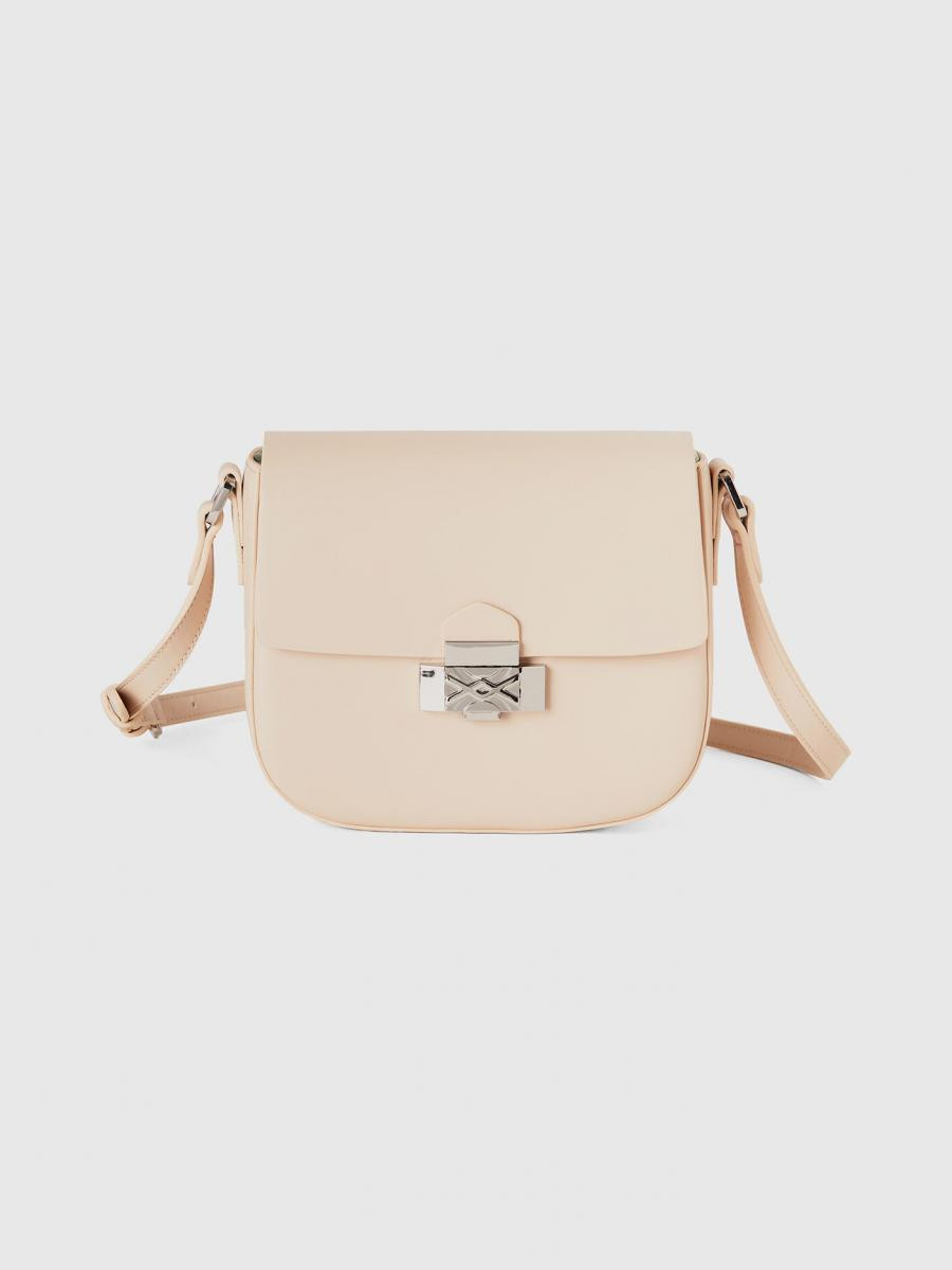 Benetton ženska mala torbica od glatke imitacije kože sa podesivim kaišem za rame. Prednji preklop sa metalnim kopčanjem sa logotipom. Svestrana i šik. Dimenzije: 16*18*5 cm.