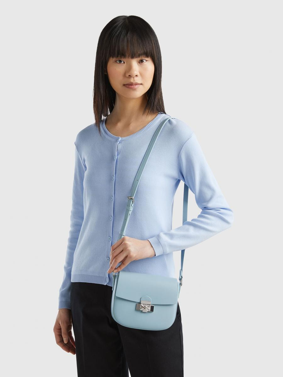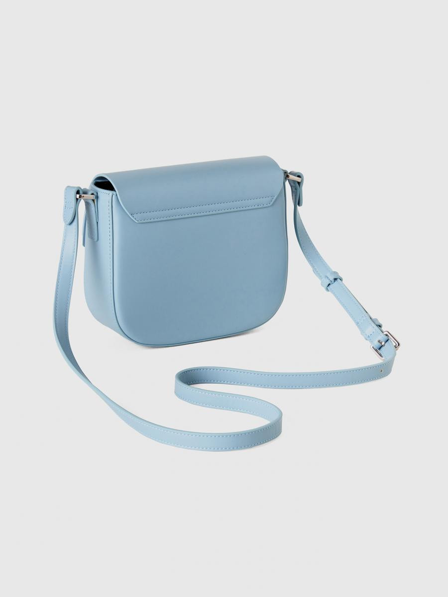 Benetton ženska mala torbica od glatke imitacije kože sa podesivim kaišem za rame. Prednji preklop sa metalnim kopčanjem sa logotipom. Svestrana i šik. Dimenzije: 16*18*5 cm.