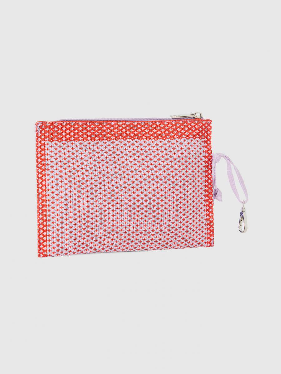 Benetton ženski pravougaoni neseser od pletene tkanine sa žakar pleteninom. Opremljen otvorom sa patent zatvaračem i kukom za pričvršćivanje na odgovarajuću torbu. Posebne pletene karakteristike koje stvaraju dvobojni uzorak sa velikim logotipom u sredini. Moderan i funkcionalan, uvek uz vas. Dimenzije: 22*15 cm.