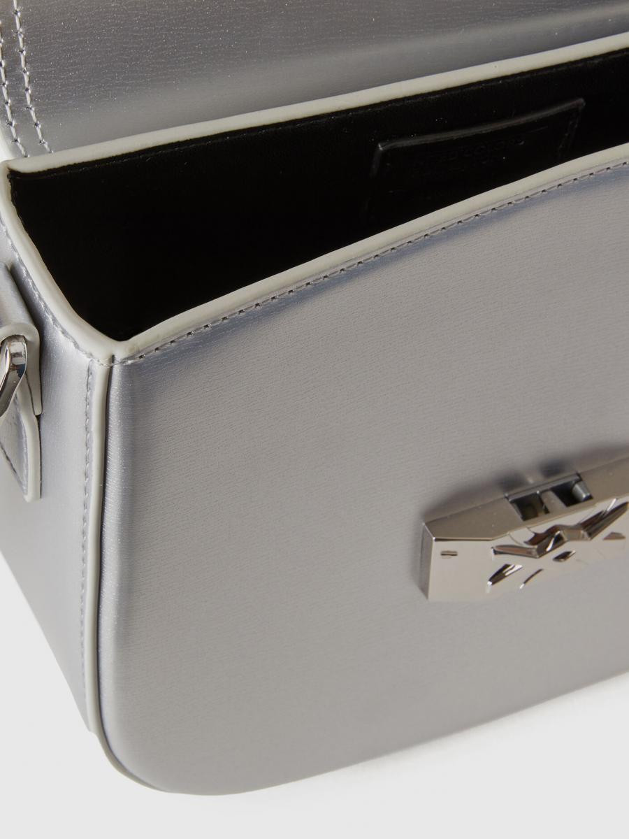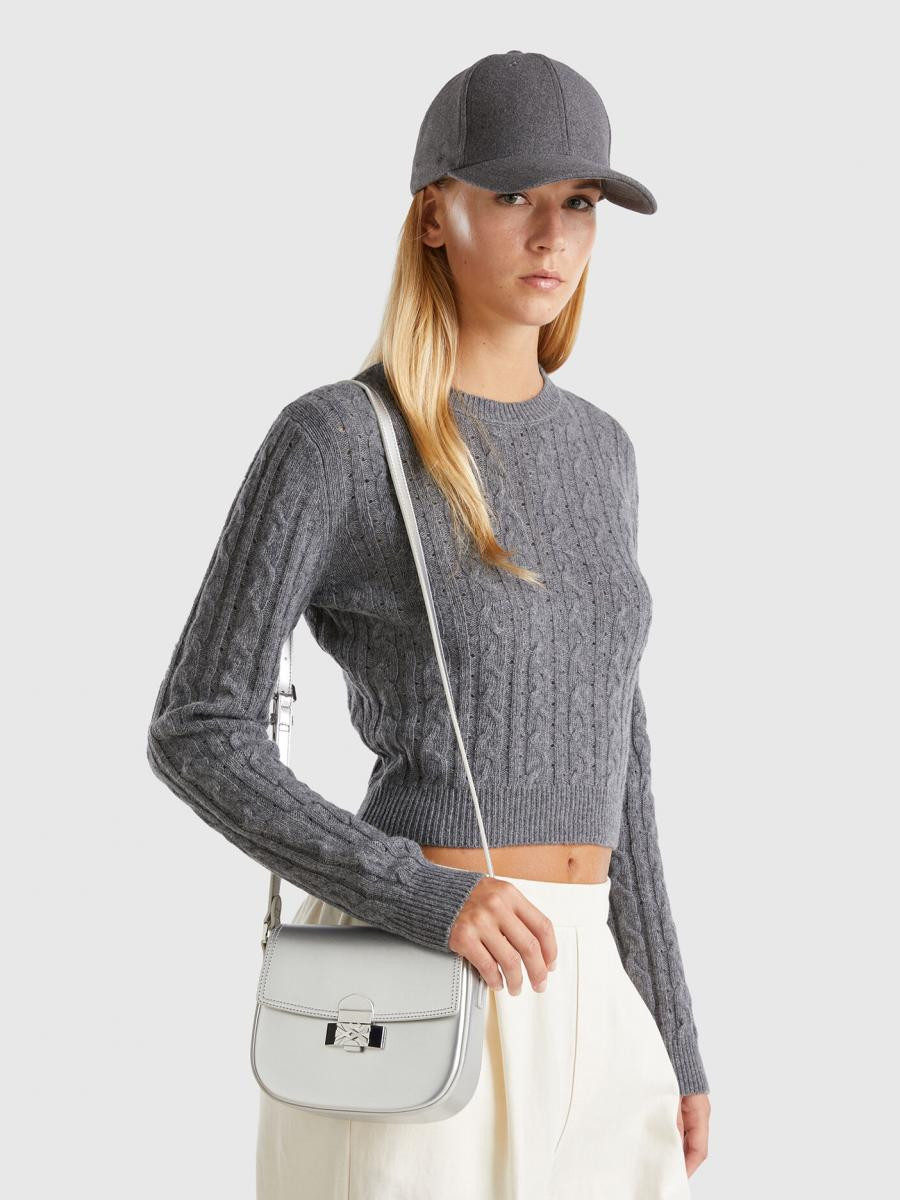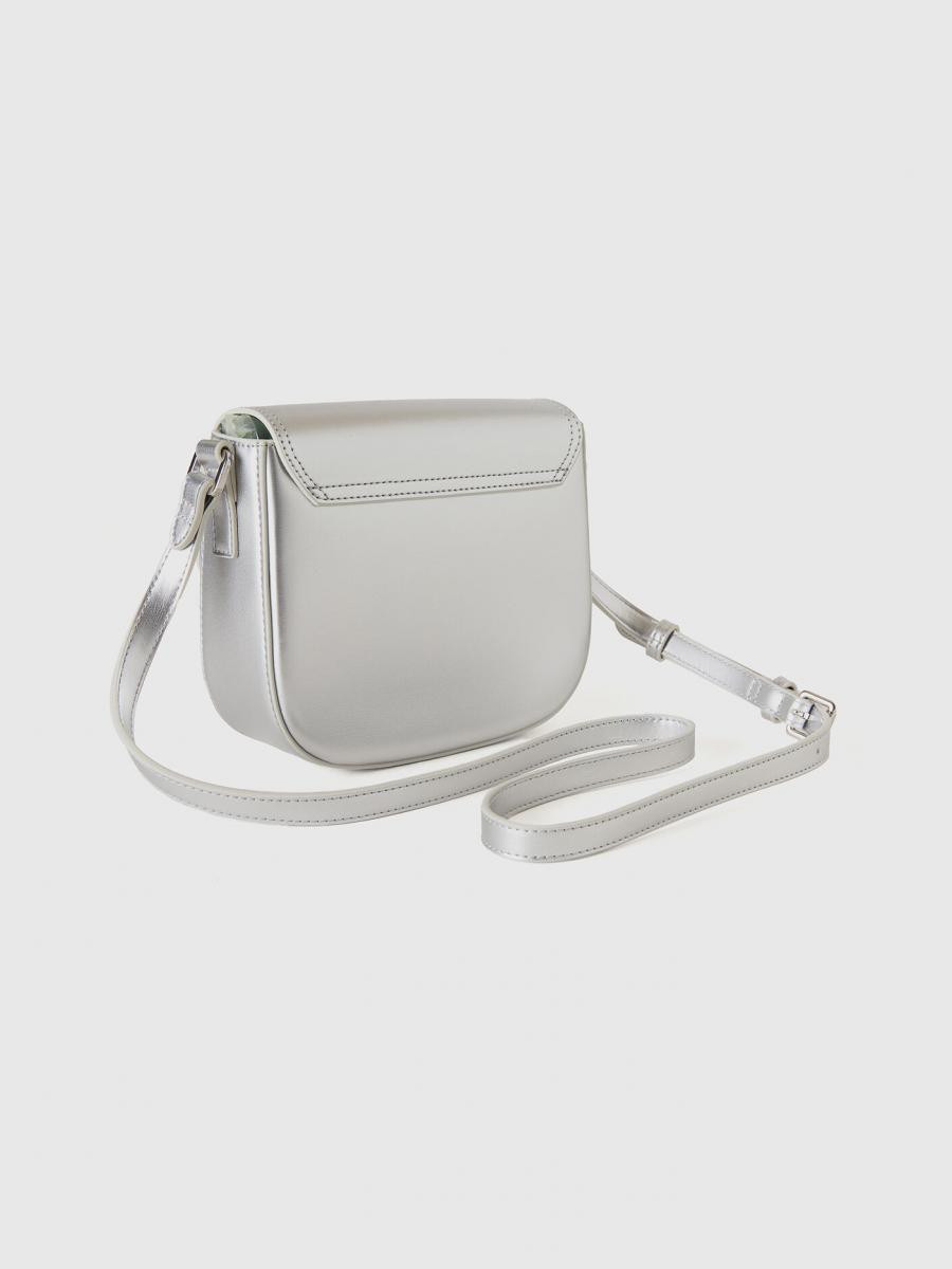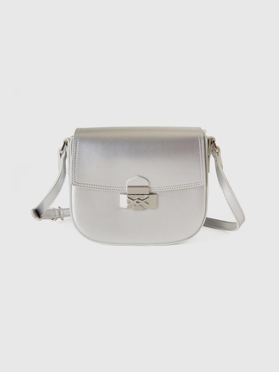 Benetton ženska mala torbica od sjajne sintetičke lakirane kože, sa duplom ručkom. Podesiva naramenica, prednji preklop sa metalnim logotipom.