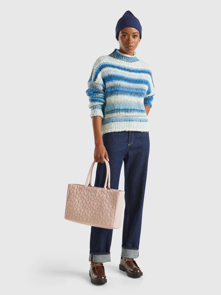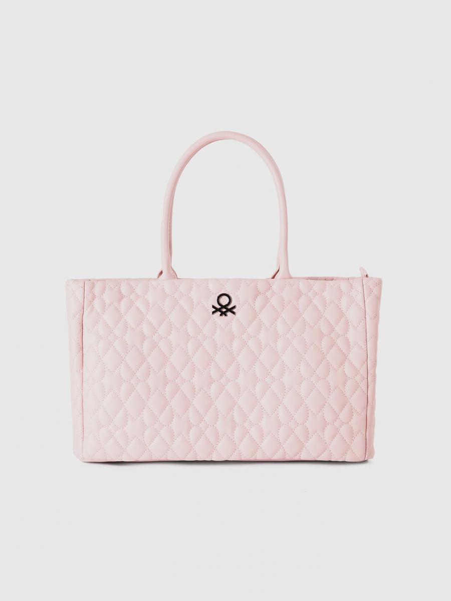 Benetton ženska velika i prostrana torba od podstavljene imitacije kože sa prošivom u obliku srca. Praktične duple ručke, otvor za zatvaranje i metalna ploča sa logotipom na jednoj strani. Dimenzije: 36*23*12 cm.