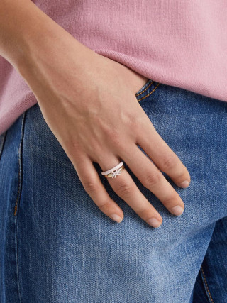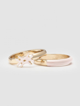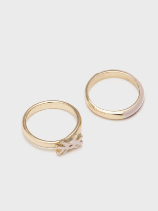 Benetton ženski set od dva metalna prstena sa zlatnom završnom obradom. Jedan prsten sa emajliranim logom, drugi sa emajliranom trakom. Svakodnevno i šareno, za dodavanje ličnog dodira svakoj odeći.