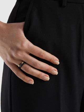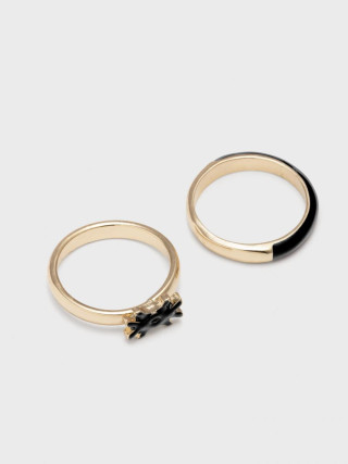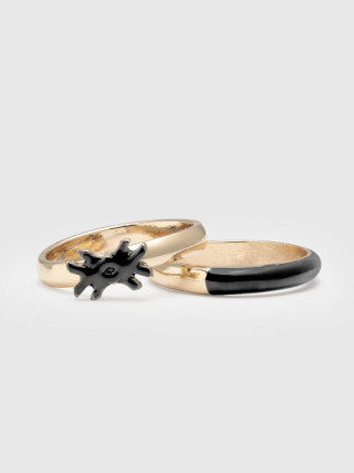 Benetton ženski set od dva metalna prstena sa zlatnom završnom obradom. Jedan prsten sa emajliranim logom, drugi sa emajliranom trakom. Svakodnevno i šareno, za dodavanje ličnog dodira svakoj odeći.
