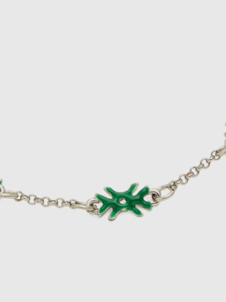 Benetton ženska narukvica od metalnog lančic´a, sa emajliranim logotipom Benetton u boji i šarmom na kraju. Zlatna/srebrna završna obrada i zatvaranje na kuku sa tri podešavanja. Šik i šareni komad nakita za svakodnevno nošenje.
