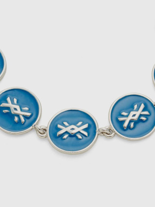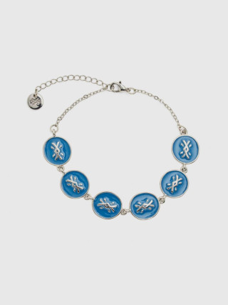 Benetton ženska narukvica od metalnog lančic´a, sa emajliranim privescima u boji, logotipima i privezkom na kraju. Srebrna završna obrada i podesivo zatvaranje na kuku. Šik i šareni komad nakita, za svakodnevno nošenje.