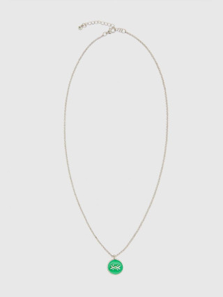 Benetton ženski metalni lančic´ sa srebrnom/zlatnom završnom obradom. Kružni privezak sa emajlom u boji i srebrnim logom, podesiva dužina. Savršeno za dodavanje boje bilo kojoj odec´i.
