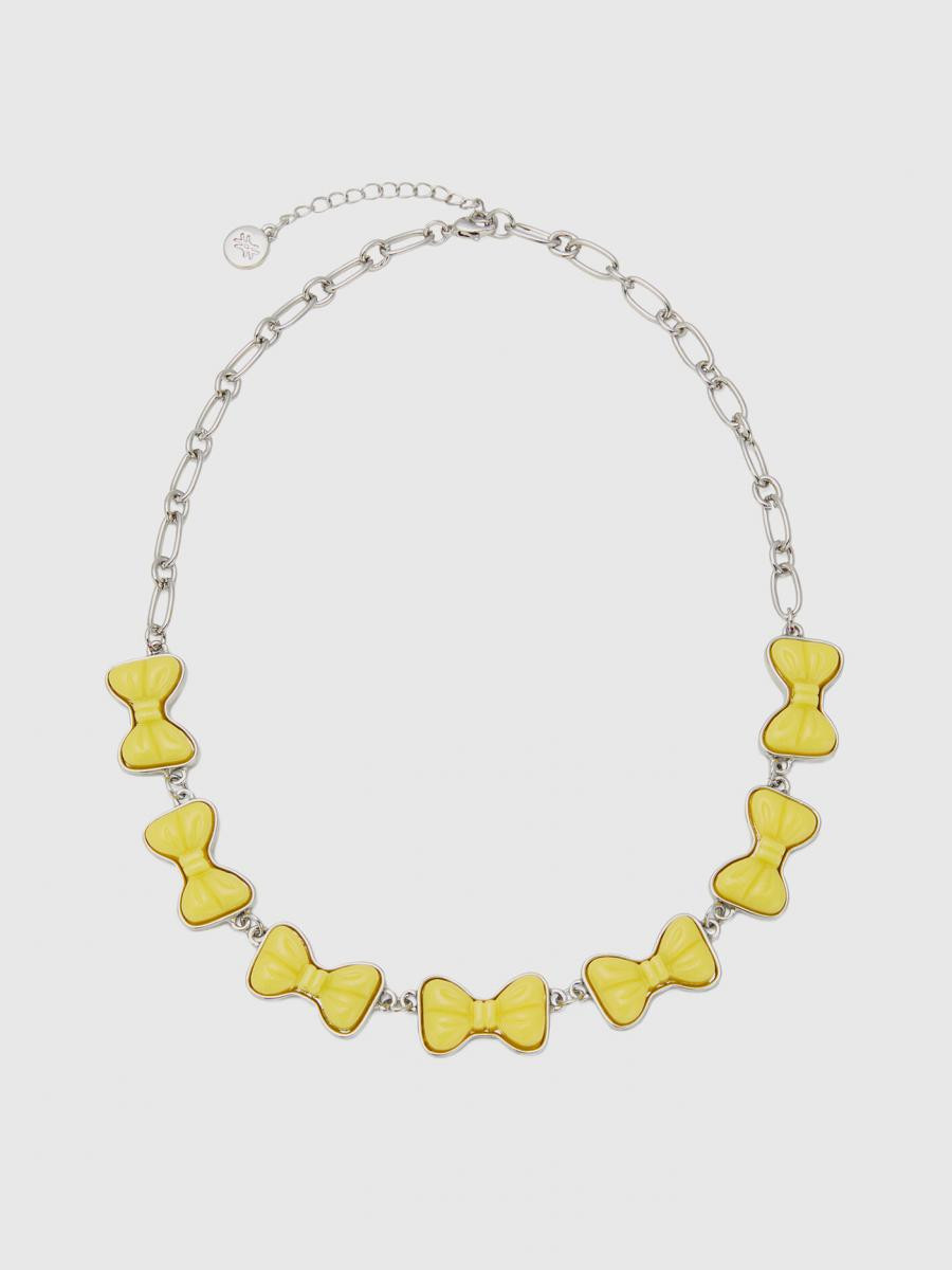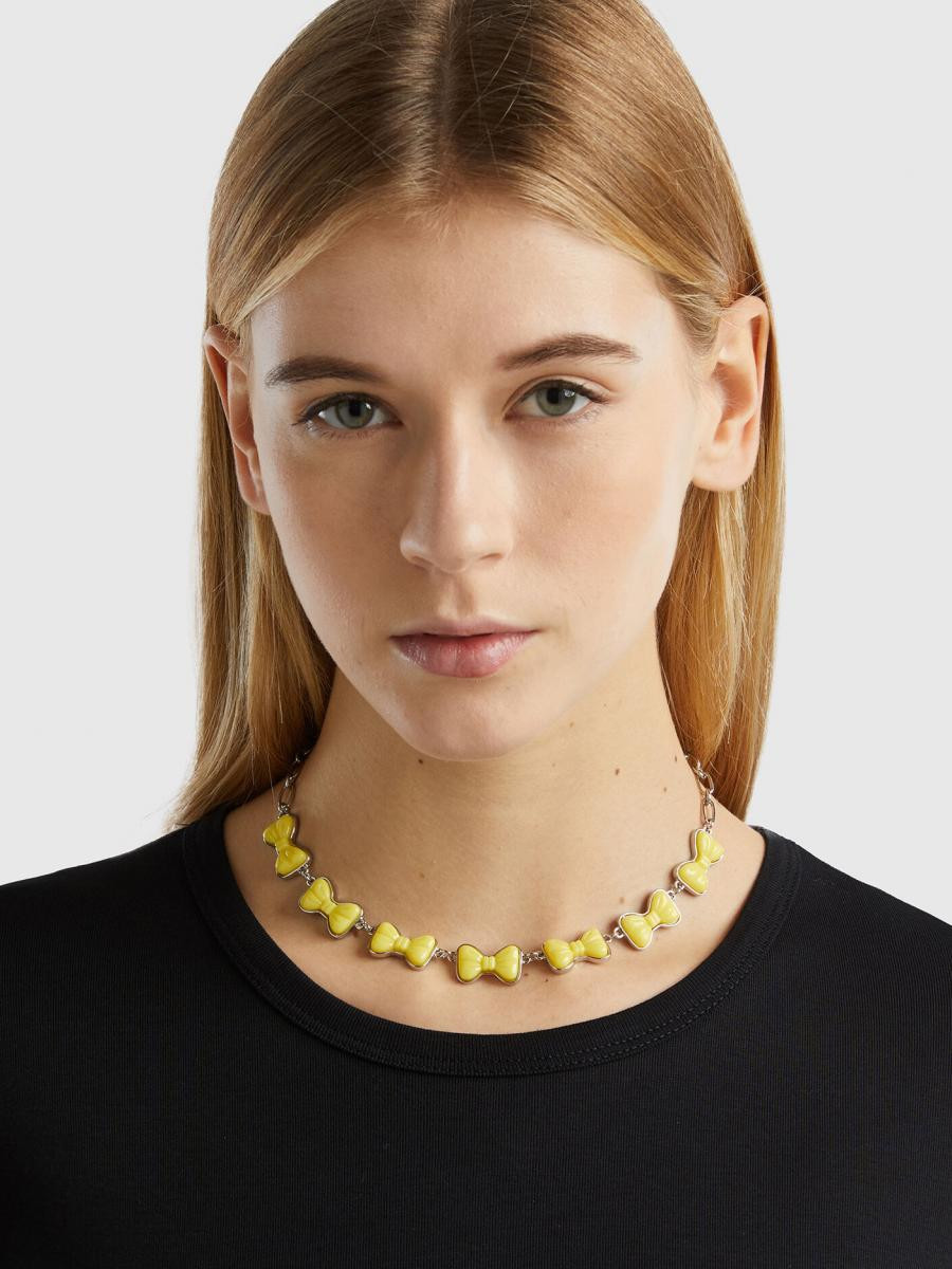 Benetton ženski metalni lančić sa emajliranim mašnama. Srebrna završna obrada i podesivo zatvaranje na kuku. Savršena za nošenje sa bilo kojom odećom.