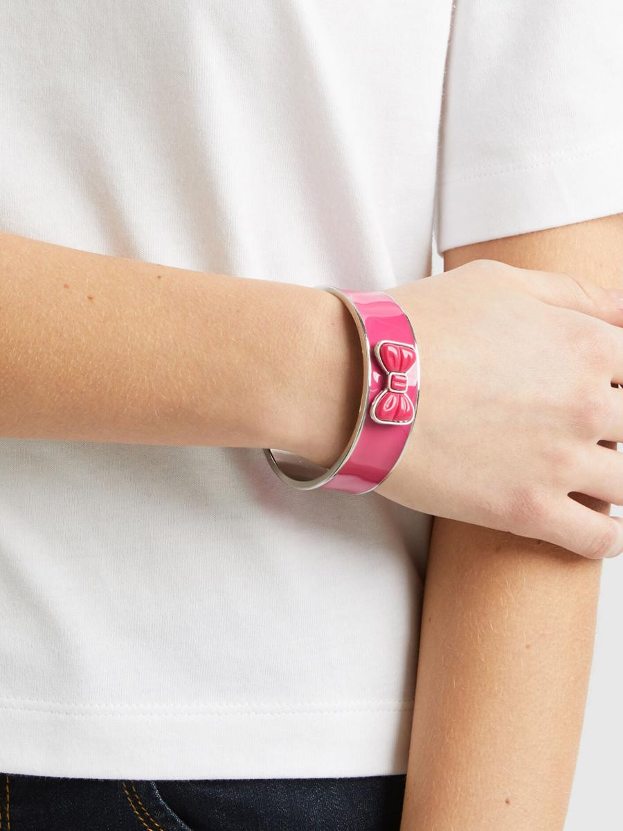 Benetton ženska punija, čvrsta metalna narukvica sa srebrnom završnom obradom. Emajlirana traka i reljefni luk. Glamurozan i šaren dodatak za dodavanje ličnog dodira svakoj odevnoj kombinaciji.