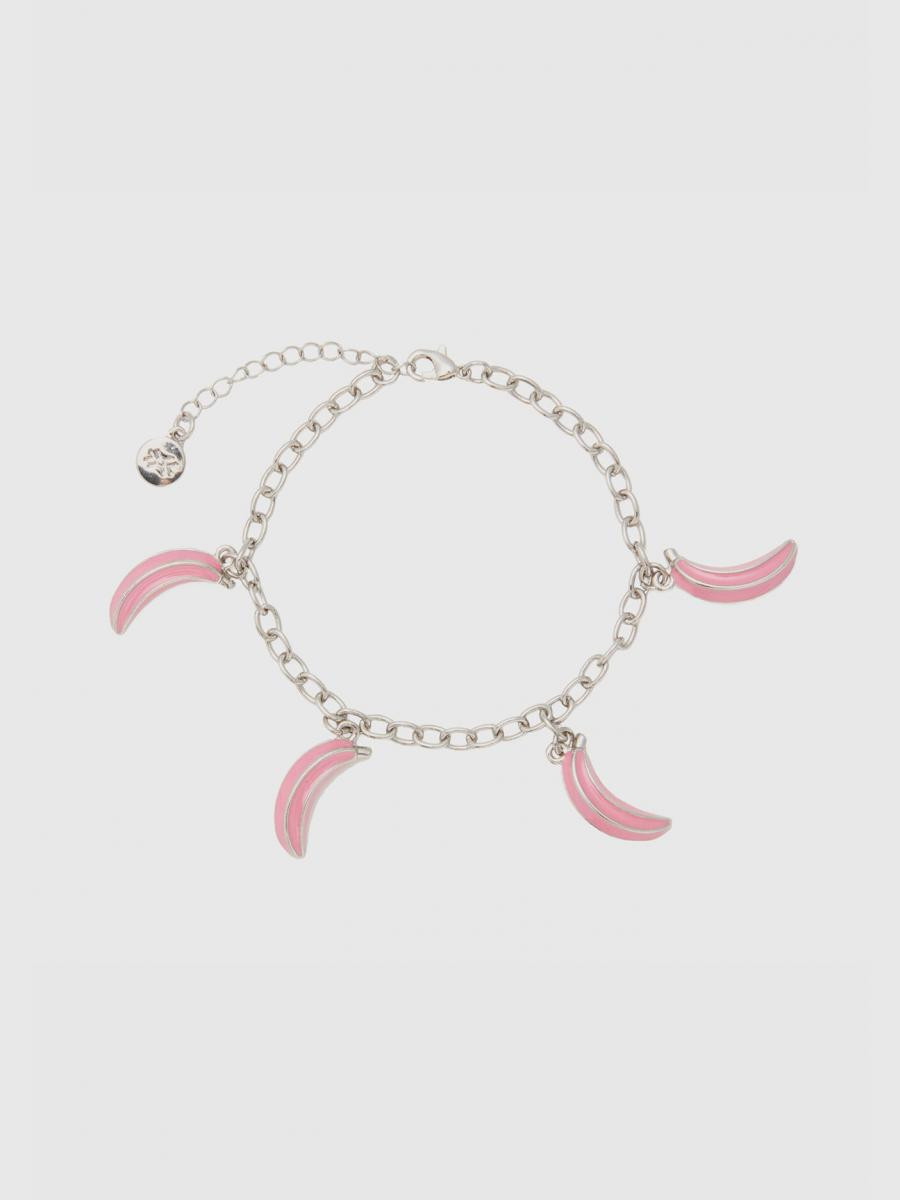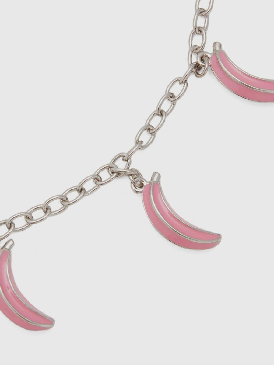 Benetton ženska narukvica od metalnog lančića, sa emajliranim privescima. Srebrna završna obrada i podesivo zatvaranje na kuku. Šik i šareni komad nakita za svakodnevno nošenje.