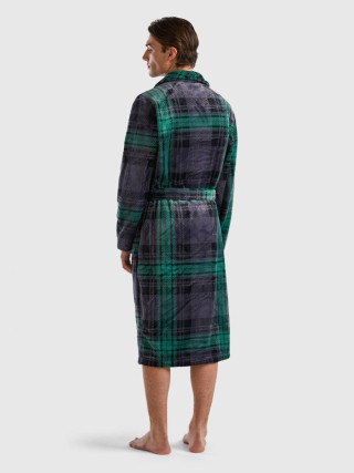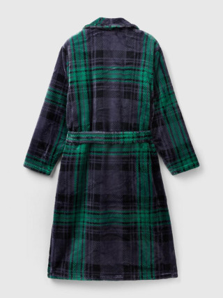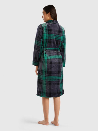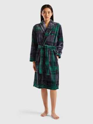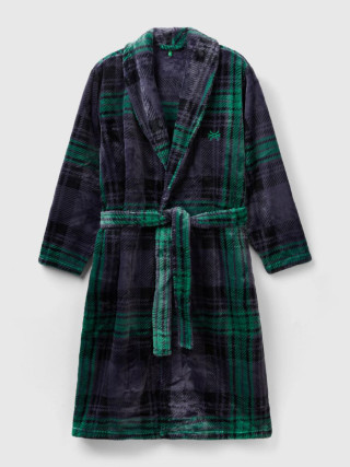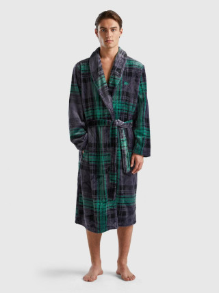 Benetton unisexs bademantil od veštačkog krzna sa efektom plišanog medveda sa višebojnim kariranim dezenom. Opremljen kaišem u struku, logom Benetton na levoj prednjoj strani grudi i bočnim džepovima.