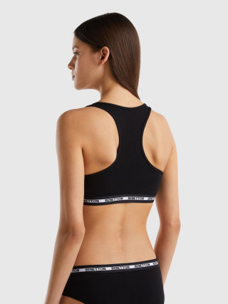 Benetton ženski brushalter od rastegljivog organskog pamuka, sa žakar gumicom sa logotipom. Fiksne široke britele i leđa u trkačkom stilu. Sportski i izuzetno udobni.