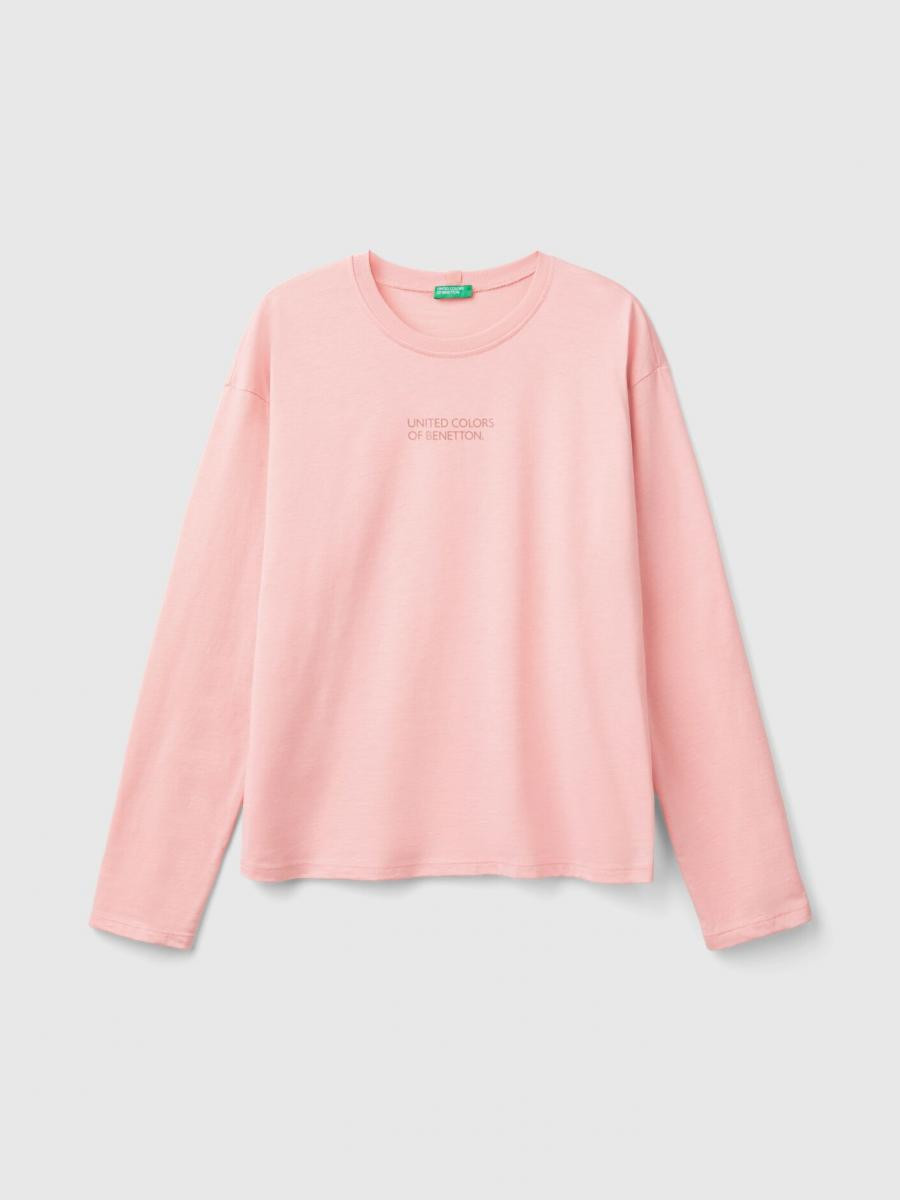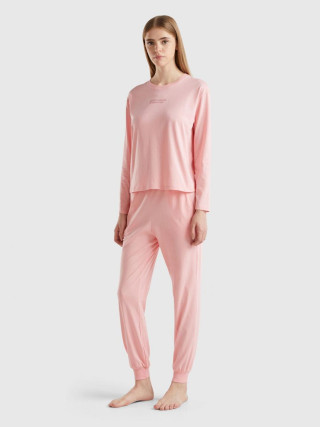 Benetton ženski gornji deo pidžame od mekog čistog pamuka. Okrugli izrez, dugi rukavi i štampa logotipa na sredini prednje strane.