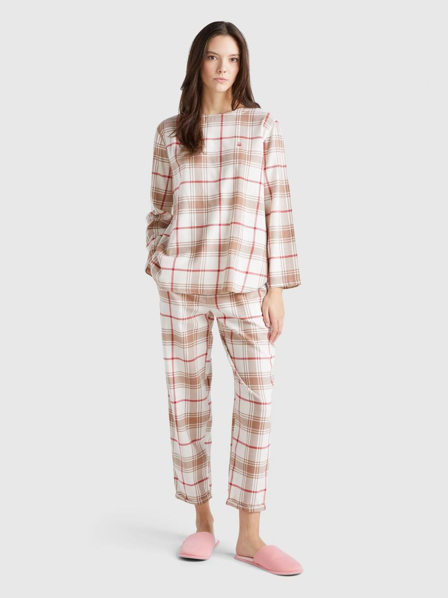 Benetton ženski donji deo pidžame od toplog flanela od čistog pamuka sa kariranim dezenom. Struk sa unutrašnjom elastičnom trakom i prednjim džepovima.