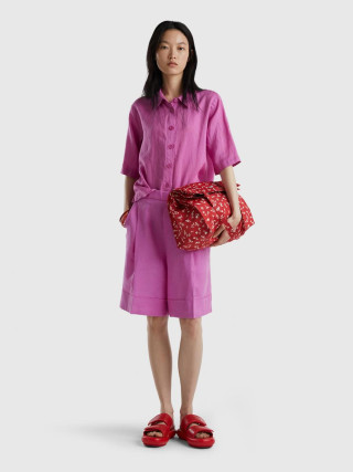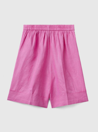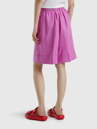 Benetton ženske bermude od čistog lana. Široka nogavica sa centralnim naborom i manžetnama na dnu nogavica. Elastičan struk pozadi i udobni prednji džepovi.
