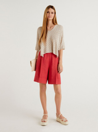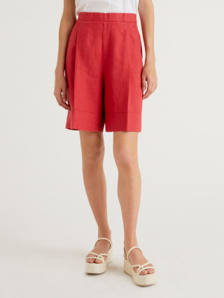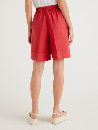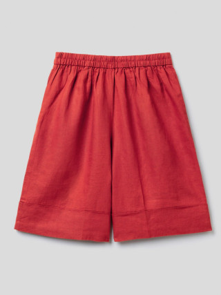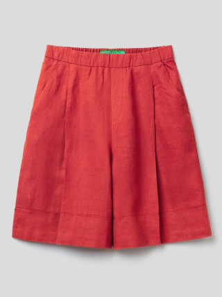 Benetton ženske bermude od čistog lana. Široka nogavica sa centralnim naborom i manžetnama na dnu nogavica. Elastičan struk pozadi i udobni prednji džepovi.