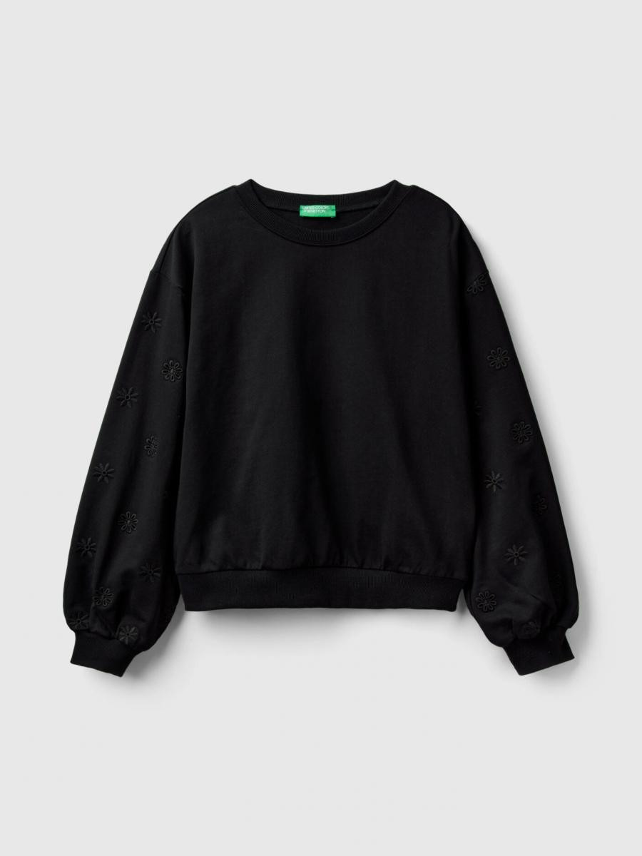 Benetton ženska dukserica sa okruglim izrezom od čistog pamuka, sa cvetnim vezom u tonu duž rukava. Savršeno za davanje romantične i ženstvene note svakodnevnim kombinacijama.