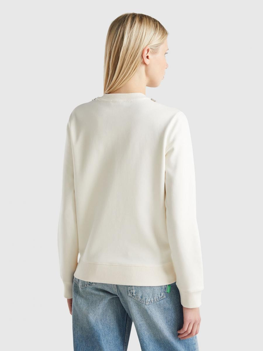 Benetton ženska dukserica dugih rukava od meke pamučne tkanine. Regularnog kroja i dragulja na dekolteu. Za svakodnevnu odeću sa glamuroznim dodirom.