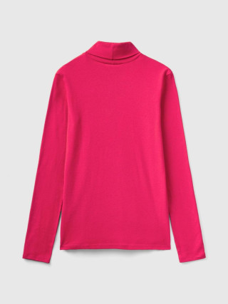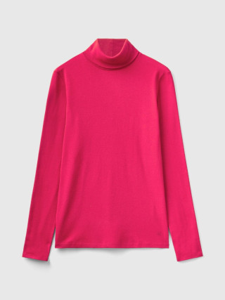 Benetton ženska majica dugih rukava sa visokom kragnom na preklop. Napravljena od čistog pamuka dugih vlakana, prestižnog materijala koji nudi udobnost, elastičnost i otpornost.