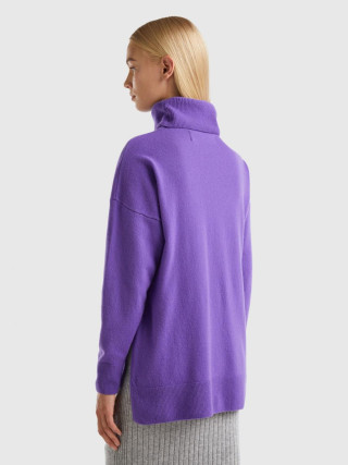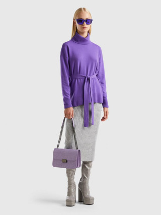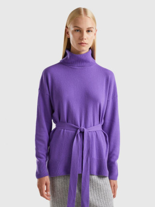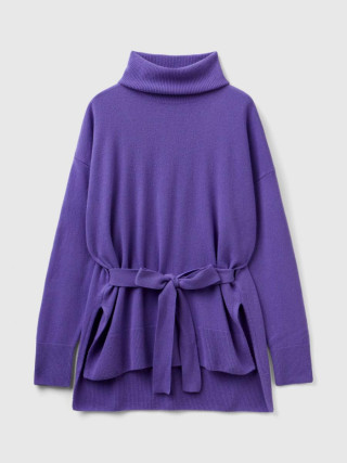 Benetton ženska rolka od mešavine vune. Dugi rukavi sa spuštenim ramenima, bočnim prorezima i pojasom sa čvorovima napred i pozadi. Chic i ženstveno.