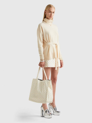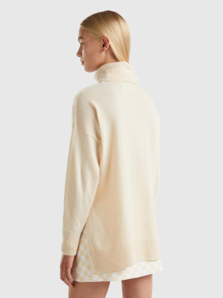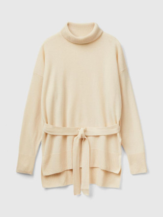 Benetton ženska rolka od mešavine vune. Dugi rukavi sa spuštenim ramenima, bočnim prorezima i pojasom sa čvorovima napred i pozadi. Chic i ženstveno.