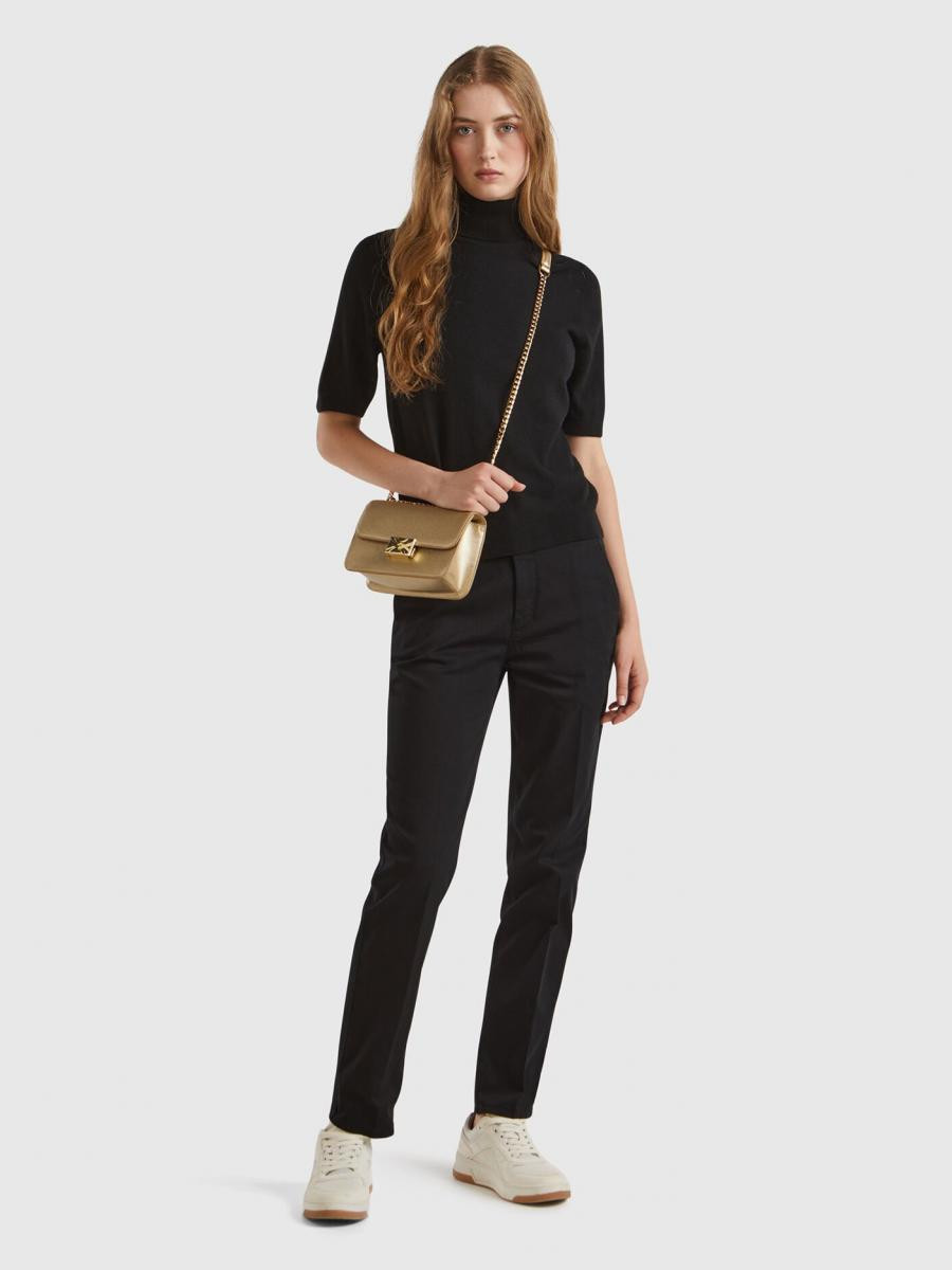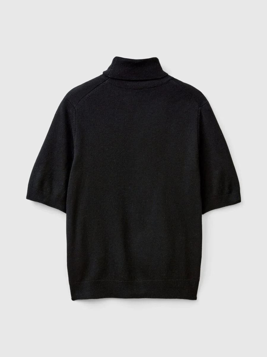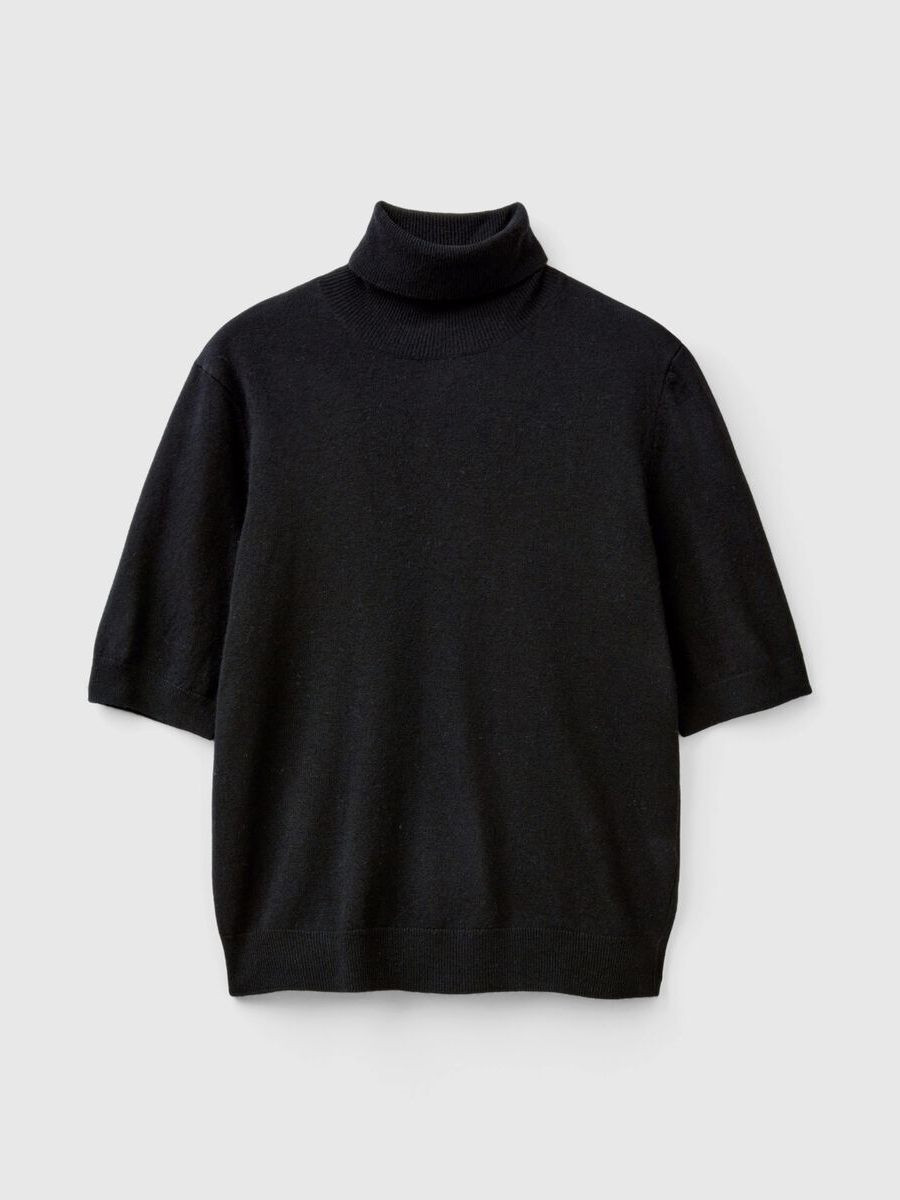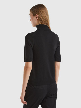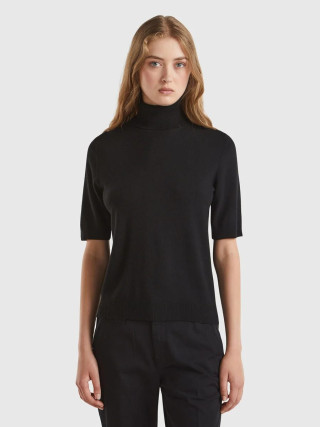 Benetton ženski topli džemper sa visokom kragnom od mešavine vune, viskoze i kašmira. Kratki rukavi do lakta, regular fit model. Odeća napravljena od toplog, laganog i udobnog prediva, savršena za svakodnevnu odeću.