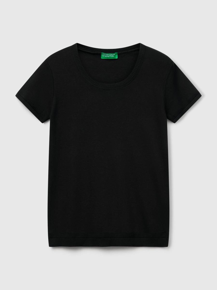Benetton ženski džemper sa okruglim izrezom kratkih rukava od čistog triko pamuka. Udoban i svestran, kombinuje se sa mnogim odevnim predmetima. Nosite ga samostalno ili kao prolećni komad ispod jakne ili sakoa.