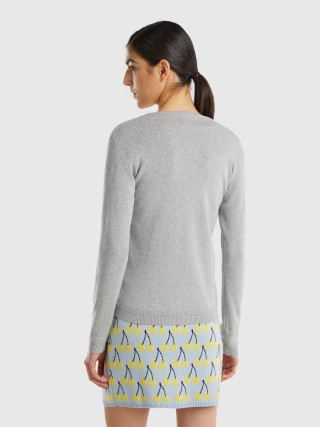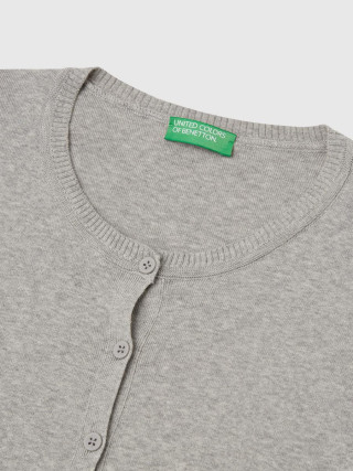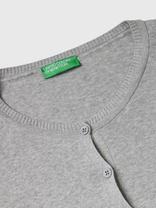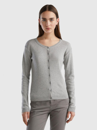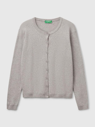 Benetton ženski mekani džemper sa okruglim izrezom dugih rukava od 100% pamuka sa prednjim otvaranjem dugmićima. Obavezna stvar u ormaru svake žene.