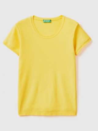 Benetton ženski džemper sa okruglim izrezom kratkih rukava od čistog triko pamuka. Udoban i svestran, kombinuje se sa mnogim odevnim predmetima. Nosite ga samostalno ili kao prolećni komad ispod jakne ili sakoa.