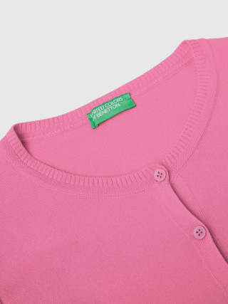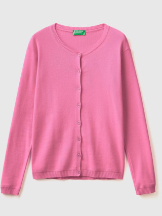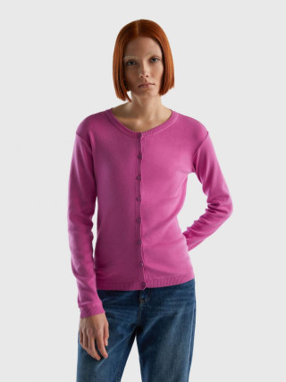 Benetton ženski mekani džemper sa okruglim izrezom dugih rukava od 100% pamuka sa prednjim otvaranjem dugmićima. Obavezna stvar u ormaru svake žene.